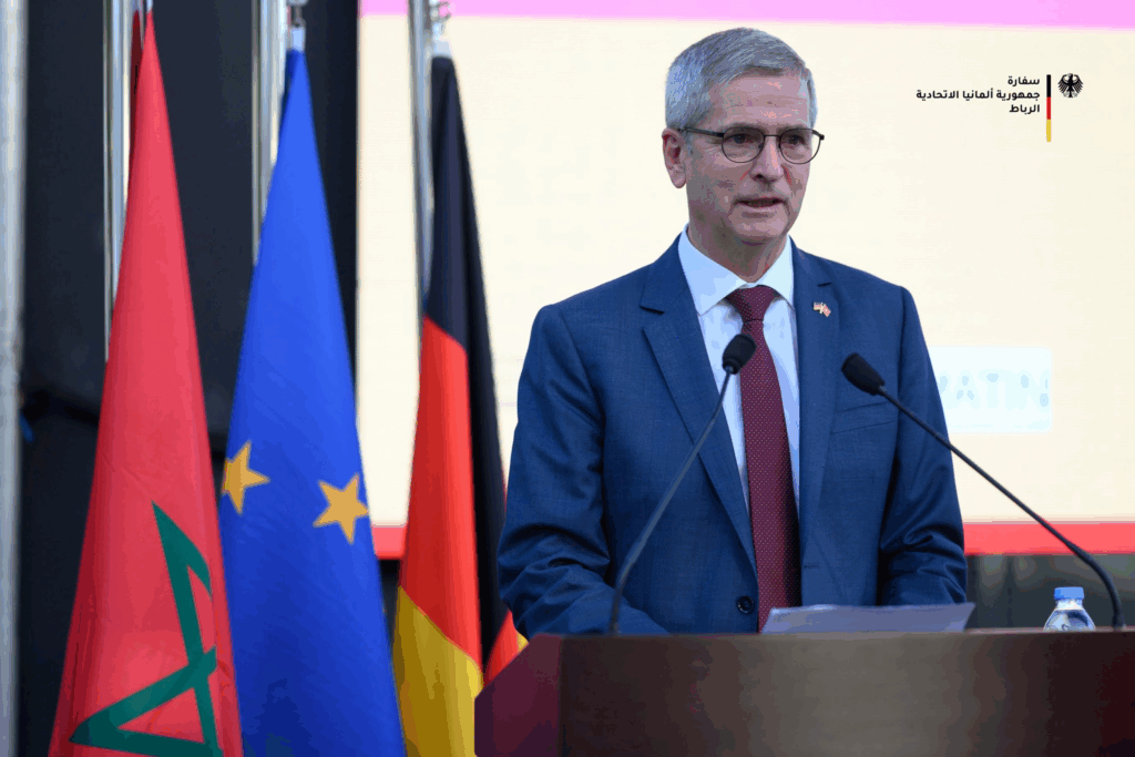 Après l’exécution de l’hymne national de l’Allemagne et du Maroc, l’ambassadeur allemand a prononcé une allocution de circonstance dans laquelle il a exprimé ses sincères remerciements au Royaume du Maroc qui accorde un intérêt particulier à ses relations de partenariat et d’entente cordiale avec l’Allemagne.