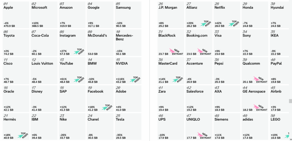 Interbrand: Les 100 marques les plus puissantes du monde en 2025