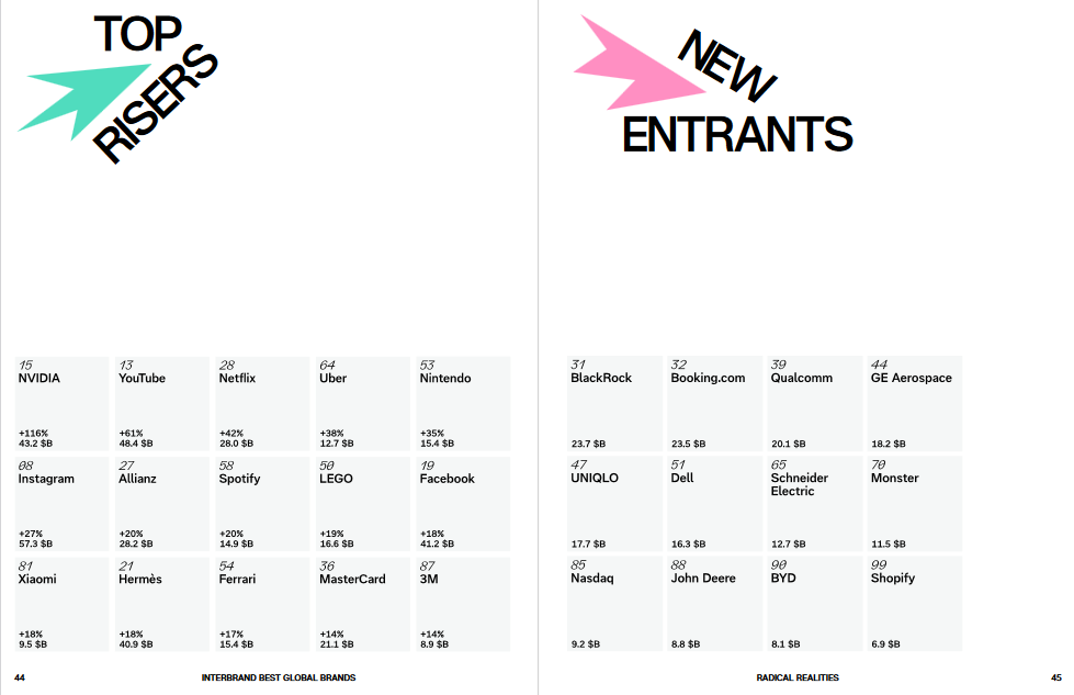 Cette nouvelle édition, intitulée “Radical Realities”, évalue la valeur totale des 100 marques les plus puissantes du monde à 3 600 milliards de dollars, soit 150 milliards de plus qu’en 2024. Mais derrière ce chiffre record, c’est une transformation profonde du rôle des marques qui se joue.