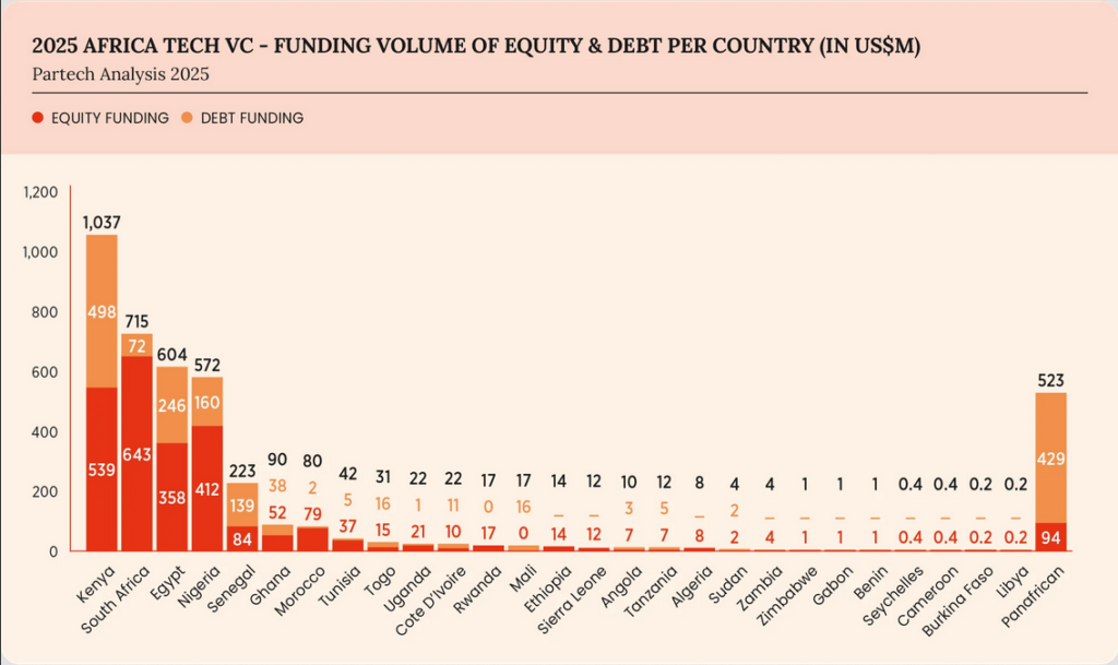Financement tech en Afrique 2025 : le Maroc s’affirme comme un pôle secondaire résilient et en montée progressive (US$80M, -6% YoY; 29 deals, +7% YoY)